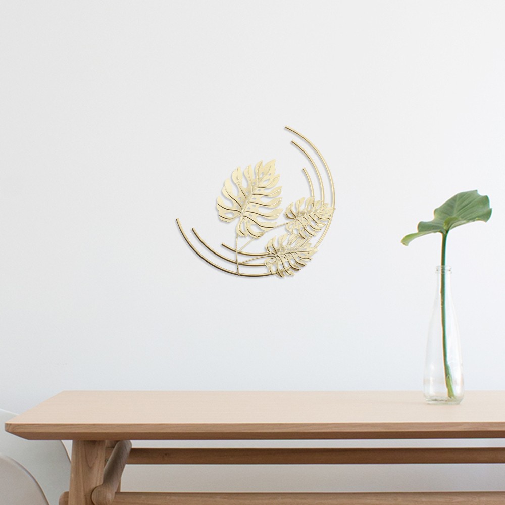 Tropical Leaf Decor Wall Golden Leaves Hanging Ornaments for Living Room Metal